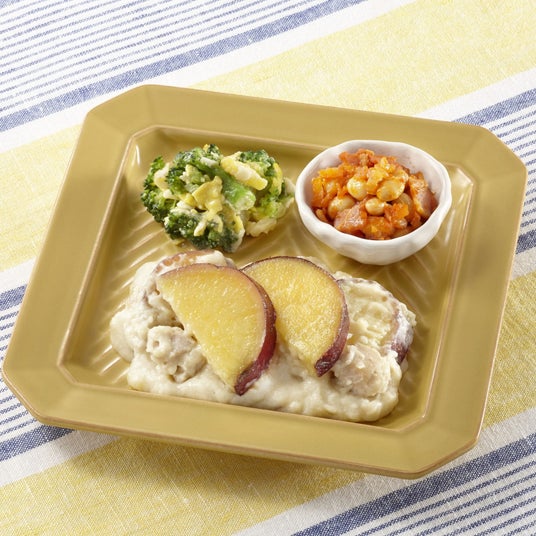 ワタミファームのさつまいもシチューワタミファーム佐原農場の有機さつまいも(紅はるか)とワタミファーム美幌峠牧場のグラスフェッドミルクのベシャメルソースを使用したシチューです。今年の秋に収穫したさつまいもを倉庫で定温貯蔵して追熟させました。じっくりと寝かせて甘みを引き出した紅はるかはねっとりと濃厚な甘みが特徴です。