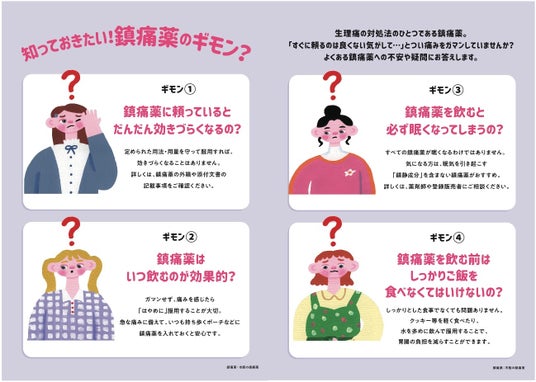 生理に関連する製品展示エリアでは、生理痛の対処法のひとつとして、解熱鎮痛薬「ロキソニンSプレミアムファイン」を紹介しながら、市販の鎮痛薬に対する疑問にお答えするボードも併せて展示します。