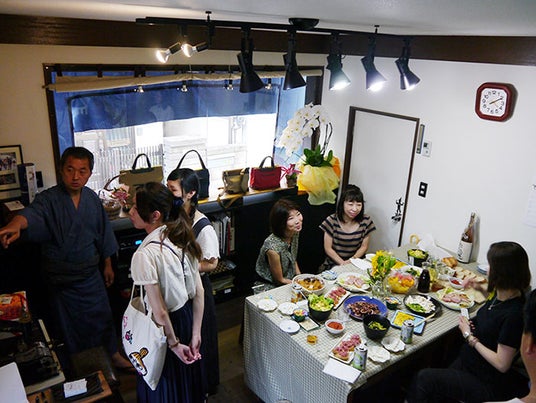 <オープニングパーティ!鞄だけでなく料理も渡辺さん作>
