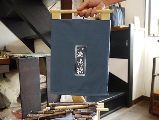 また、渡辺氏には「千住の土産」「千住の名物」として育てていきたいオリジナルの商品があります。それが「のれんバッグ」です。先ほどの工房兼店舗のオープン記念パーティで配布したノベルティバッグが好評で、商品化したものです。