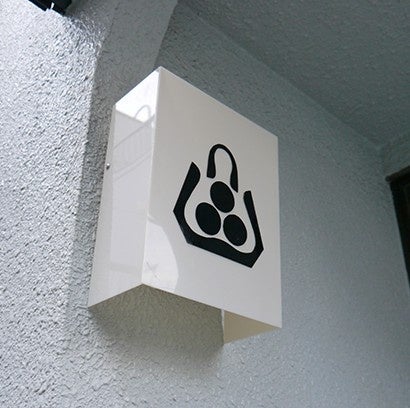 <娘さん手づくりの鞄型看板!雰囲気があります>