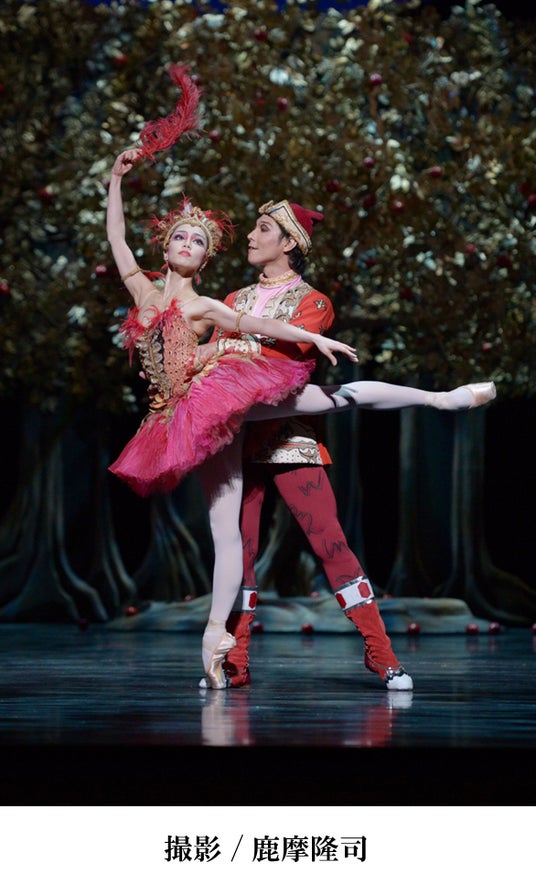 また、新国立劇場バレエ団の小野さんは、実際に劇中で使われる火の鳥の赤い羽を持って登場。本展の成功を祈り、羽を用いた特別な演出で会場を彩りました。