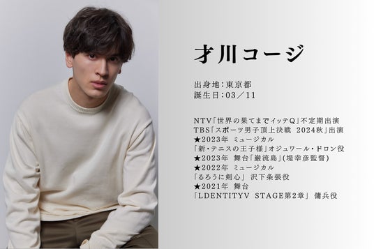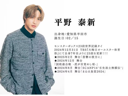 本作の準主役は、実力と華を兼ね備えた2名 平野泰新さん & 才川コージさん(Wキャスト)が勤めます。2025年4月20日 綾瀬公演 には、平野泰新さんが出演。驚異の身体能力と表現力を兼ね備えたお二人が、舞台の中心で圧倒的な存在感を放ちます
