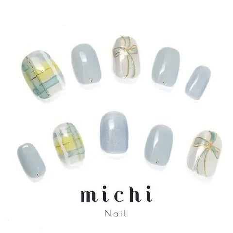 スプリングチェックリボンブルーネイルhttps://jp.michimall.com/?pid=184722890