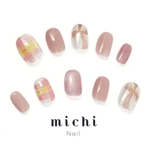 スプリングチェックリボンピンクネイルhttps://jp.michimall.com/?pid=184722956