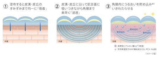 隙間なく肌全面から浸透*3。角層奥まで素早く成分を届けます。