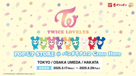 さらに発売を記念してバンダイナムコ Cross Store 東京・大阪梅田・博多にて、商品販売を中心とした「TWICE LOVELYS × BANDAI POP-UP STORE @バンダイナムコCross Store」を開催いたします。