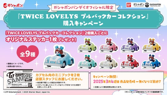 さらに、全国のガシャポンバンダイオフィシャルショップ・POP-UP STOREでは『TWICE LOVELYS プルバックカーコレクション』2個ご購入につきオリジナルステッカーが1枚もらえるキャンペーンも実施いたします。