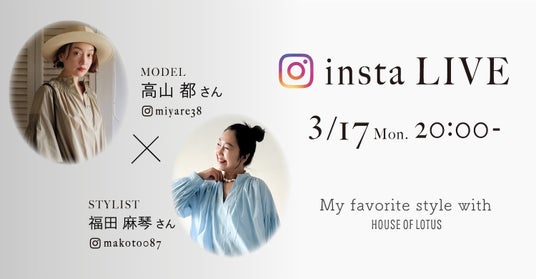 親交のあるお二人がファッションの魅力やこの春に注目しているコーディネートのポイント、HOUSE OF LOTUSのスタイリングについて楽しく語るインスタライブを実施いたします。