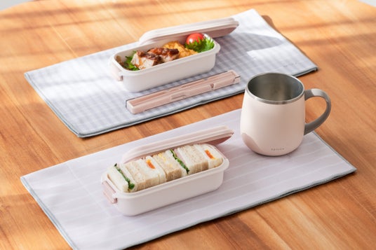 今回の新デザインでは、ランチョンマットとしても使える、1枚で2つの柄が楽しめる仕様になっています。おにぎりやお弁当箱、ペットボトルなどの持ち運びはもちろん、毎日のランチタイムを気分に合わせて色替えできるバイカラーで、より一層お楽しみいただけます。