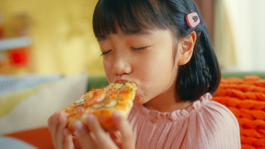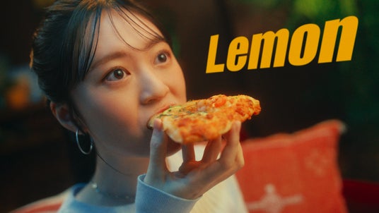 『大海老のガーリックシュリンプ』にやみつきの仲良し4人組が、「大海老ぷりぷリシュリンプ、やみつきの香りガーリック♪爽やかさっぱりレモン♪」と、『大海老のガーリックシュリンプ』のやみつきになる魅力を踊って唄って楽しく表現します。美味しそうなピザに満足気にかぶりつく表情は、まさに「やみつき!」です。