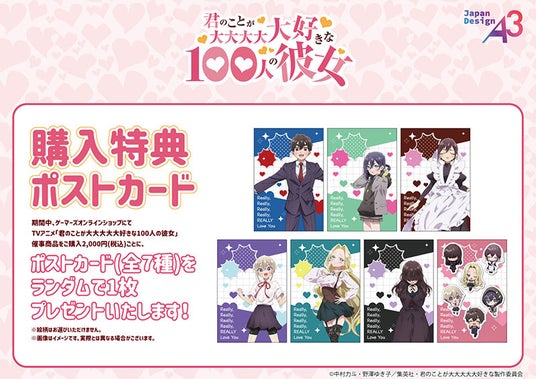 期間中、ゲーマーズオンラインショップにて『君のことが大大大大大好きな100人の彼女』催事商品をご購入2,000円(税込)ごとに、特典ポストカード(全7種)をランダムで1枚プレゼント!