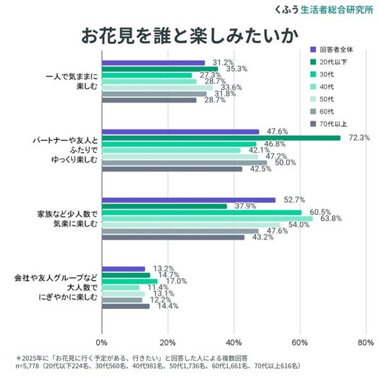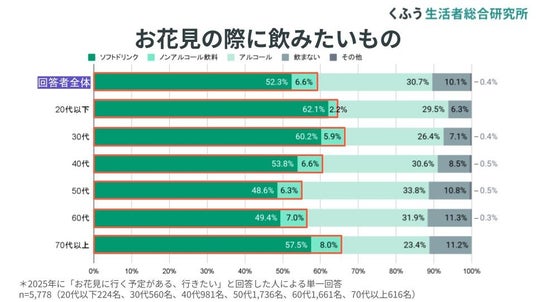 【くふう総研】2025年のお花見の傾向を年代別に分析!少人数の"ノンアル花見"が主流、ひとりでの"ソロ花見"派も約3割
