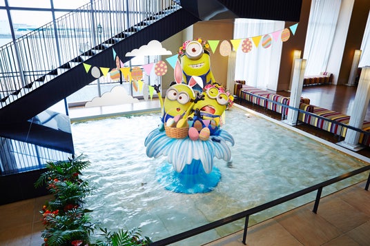 噴水のオブジェにて春の到来を祝うミニオンたち。(イメージ)ホテル ユニバーサル ポート