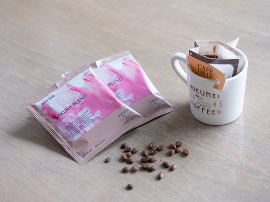 「さくらブレンド」のドリップバッグ。特別な器具いらずで気軽に本格派の味わいを楽しめます。