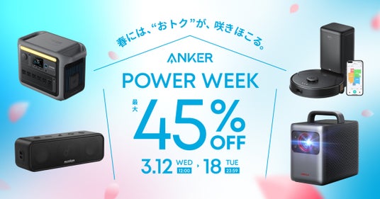 米国・日本・欧州を中心にデジタル関連製品でトップクラスの販売実績を誇るAnkerグループの日本法人、アンカー・ジャパン株式会社(本社:東京都千代田区、代表取締役CEO:猿渡 歩)は2025年3月12日(水)12:00から3月18日(火)23:59まで、Anker Japan 公式オンラインストア(https://www.ankerjapan.com/pages/2025-03-powerweek)およびAnker Japan 公式アプリ、直営店Anker Store(※1)においてAnkerグループの200以上の製品を手に届きやすい価格でお買い求めいただける「Anker Power Week」を開催。また、2025年3月7日(金)12:00~3月12日(水)11:59にはポータブル電源やソーラーパネルをメインとした先行セールも開催いたします。