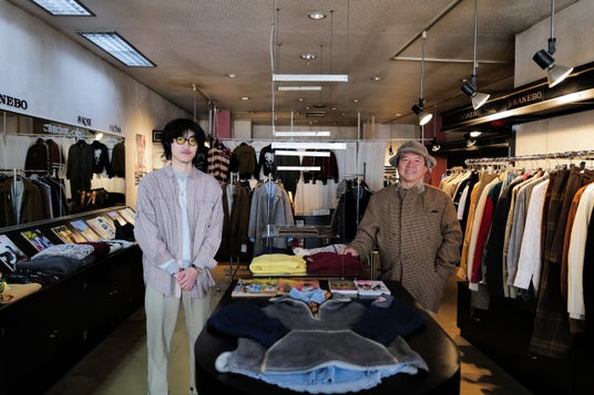 現役大学生でありながら80年代DCブランドに特化した古着店を営む市村修蔵さん(左)とLIVE STOCK MARKETディレクター小沢宏さん(右)