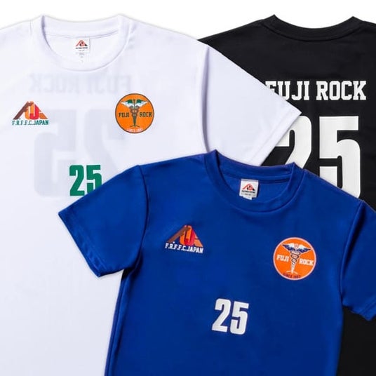FUJI ROCK '25 サッカーTシャツフジロックの定番アイテム、サッカーTシャツ2025完成!裏地にはメッシュを採用し、速乾性に優れたダブルフェイス生地を使用。UV CUTも施してあり、野外には最適な機能素材。
