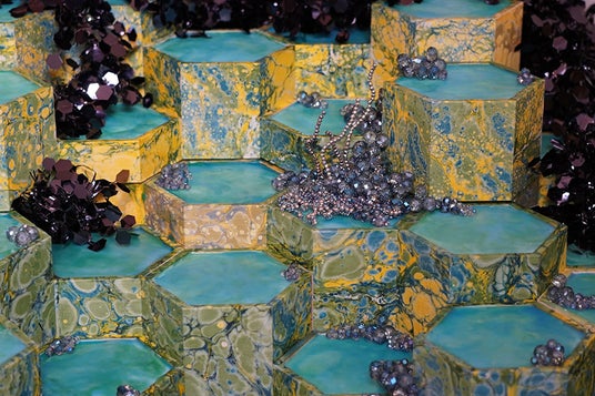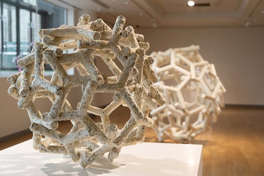 「つながりあう世界」を主題に、自然界の多様性や絶え間ない変化、環境を介して紡がれる相互作用を掬い上げる。絵画やインスタレーション、エンコウスティック技法を通じ、自然界に内在する美しい仕組みとつながりを表現してきた。鬼押出し園の景観とヒカリゴケから着想を得た今回の作品では、微細な構造を視覚化し、細胞をガラス玉、葉緑素をビーズ、鉱物結晶を金属素材で抽象化する。ミクロとマクロが織りなす自然の法則を映し出し、新たな視点を呼び起こす。