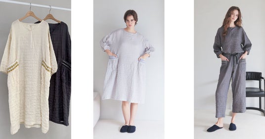 カラーはcream、gray、 品番:25-12004(gray) 品番:25-12406(charcoal gray)charcoal grayの3色展開 ¥11,000(ワンピース) ¥12,100(セットアップ) ※価格は税込となります。サイズはM~Lとなります。