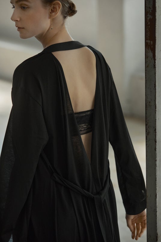 AROMATIQUEの生地に惚れ込んだ「Noblesse Oblige」デザイナーのIgor Pachemski(イゴール・パチェムスキー)氏のアプローチを受けコラボレーションが実現。きっかけとなったシルクアコーディオン生地は、イタリア・ミラノ北部で100年以上の歴史を持つ「Ongettta(オンゲッタ)」の極細絹糸を先染めし、日本国内の工場できめ細やかなリブに編み立てたシルク100%のオリジナル生地。コラボコレクションは、すべてシルクアコーディオンを使用しています。ヨーロッパならではの官能的なデザイン、ジャパンクオリティの確かな着心地、きめ細やかなシルクリブのとろける肌触りがかけあわさったラグジュアリーなインナーウェア全10型のコレクションです。