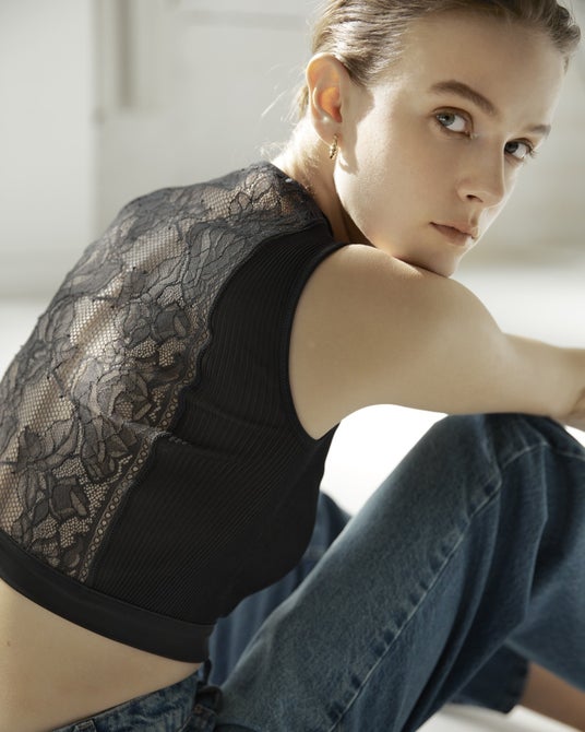 春夏のスタイリングに合わせやすい「見せるインナー」のラインナップです。コレクションを象徴するヨーロッパモダンなタンクトップは、レースを大胆に配したバックスタイルと、裾にチュールのリボンをあしらったデザイン性の高いアイテム。背面のレースが華やかなバンドゥブラは、パッドと取り外し可能なストラップ付きで機能面にも優れています。パッド付キャミソールは、フロントのVカットやバックのクロスストラップ、クロップド丈のデザインでシンプルながらもトレンド感があり、デイリーユースに最適です。