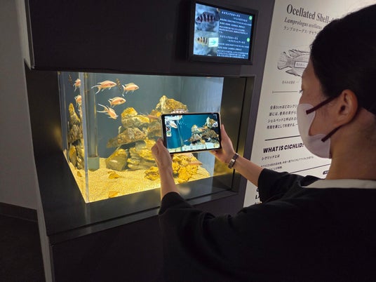 タブレットで水槽の中の生きものを探そう!