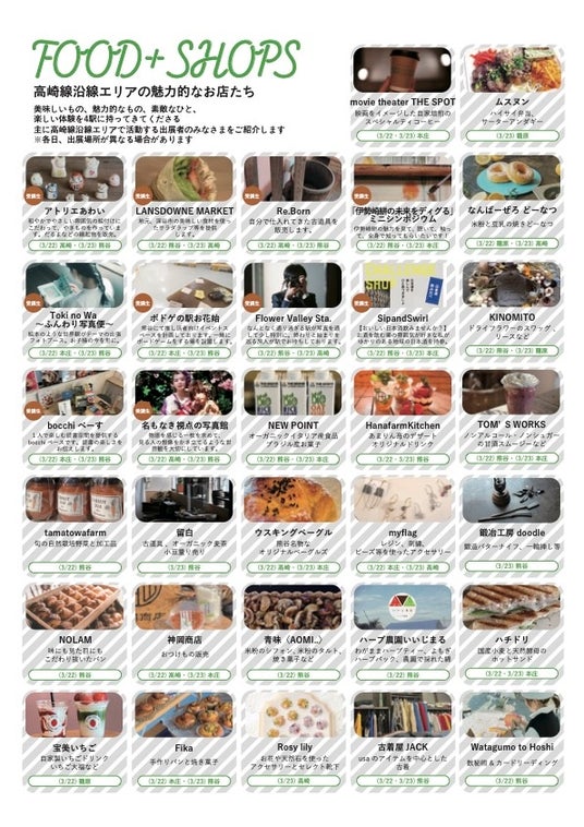 出展者 : 「高崎線リカレントスクール」受講生10名、地域の事業者22名(株式会社ハナファームキッチン、ウスキングベーグル、Fika、ハチドリ、KINOMITO、tamatowafarm 他)