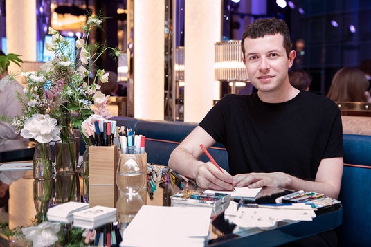 パリやロンドンのファッションウィークのショーでは、ライブドローイングでその卓越したイラストテクニックを披露している。