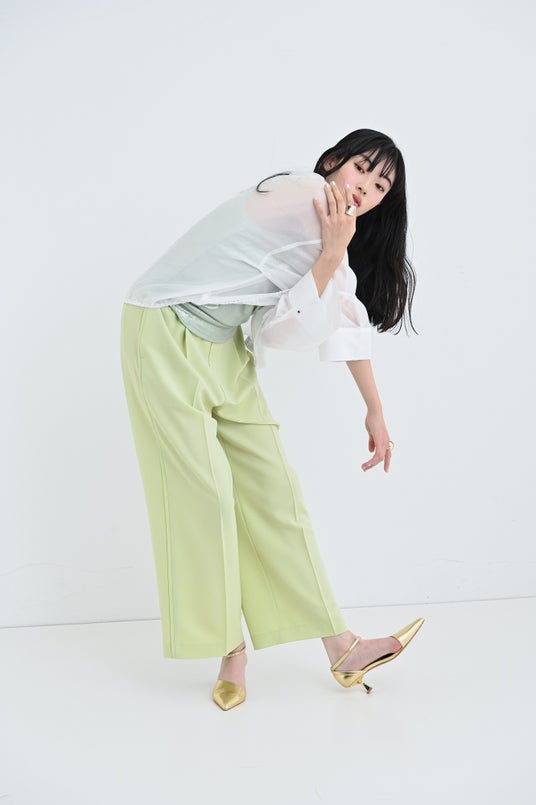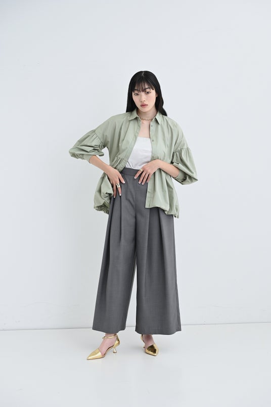 裾のドローストリングで好みのシルエットに変えられる軽やかな素材感のライトブルゾンや、ペプラムシルエットがポイントのブラウス、イージーながら美しいシルエットが幅広いシーンにもマッチするワイド&テーパードパンツの4型をピックアップし、GALLESTらしい着回し力の高いモードカジュアルスタイルをご紹介いたします。