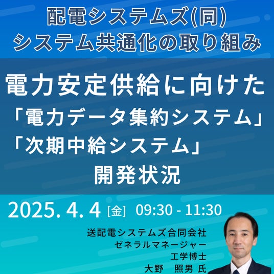 【JPIセミナー】送配電システムズ(同)「電力安定供給に向けた”電力データ集約システム”と”次期中給システム”について」4月4日(金)開催