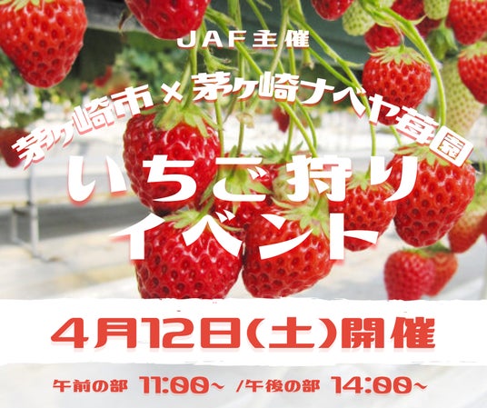 JAF(一般社団法人日本自動車連盟)神奈川支部(支部長・上野 健彦)は、4月12日(土)に茅ヶ崎市(市長・佐藤 光)と共催で茅ヶ崎ナベヤ苺園(神奈川県茅ヶ崎市)にて「いちご狩りイベント」を開催いたします。