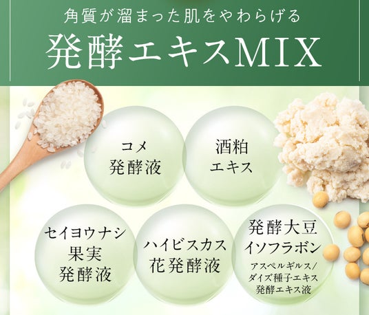 ■ごわつく肌を和らげる発酵エキスMIX日本の伝統的な発酵成分であるコメ発酵液や酒粕エキスなどをプラスすることで肌に溜まった古い角質をやわらげ、ふっくらとした弾力のある肌に導きます。