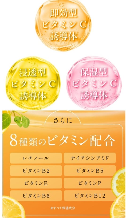■使うほどに明るい透明肌へ導く11種のビタミン発酵美容液*3のなかには有機酸やアミノ酸に加え即効型ビタミンC誘導体や浸透型ビタミンC誘導体など11種のビタミンを配合。