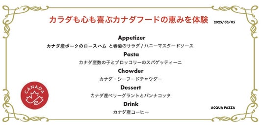 カナダ産の食材11品目を使ったクッキングデモとヘルシーなコース料理が楽しめる、カラダも心も喜ぶカナダフードの恵み体験イベントを3月5日(水)に人気レストラン「アクアパッツァ」で開催しました!