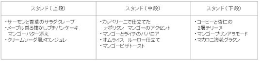 「マンゴーのレトロアフタヌーンティー」メニュー内容: