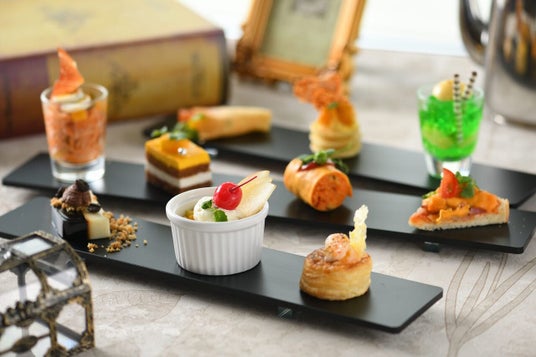 今回の新メニューは、国産マンゴーをベースに、昭和の洋食のスターメニューを現代の感性とフレンチの技法でアップデート。 糖度の高い国産マンゴーをふんだんに使用した 「 プリンアラモード」や「マンゴーとライチのババロア」、昭和の喫茶文化を彷彿とさせる 「クリームソーダ風メロンジュレ」や「オムライス ルーロー仕立て」など、令和ならではのアフターヌーンティーメニューに仕上げています。