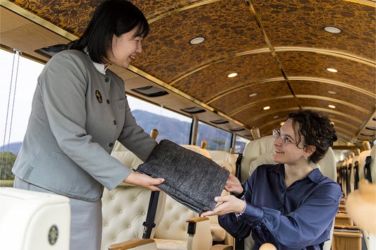 全路線、アテンダントサービス付き。世界的巨匠、水戸岡鋭治氏がデザイン。
