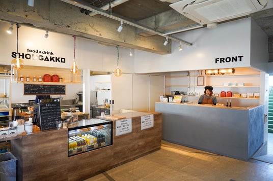 昨年オープンしたfood & drink「SHOUGAKKO」 とフロント。