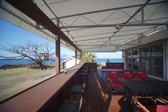 ウッドデッキだった部分に、新たなテントの屋根とカウンターを設置し、パノラマオーシャンビューのカフェテラスを新たに設けました。food & drink「SHOUGAKKO」の飲食はもちろん、BBQでもご利用いただけます。また、校内から直接出入りできる出入口も新たに設置しました。