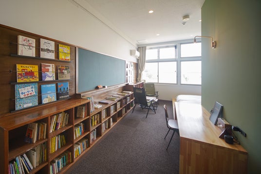昨年のリニューアルで個室も改装済み。こちらは本がたくさん置いてあるルインルーム「図書室」