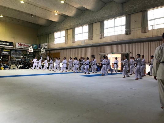 様々な活用が出来る体育館。マットを敷いての空手合宿も。鹿屋体育大学自転車競技部の練習拠点にもなっています。