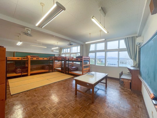 廃校を活用したユクサの施設は、学校の雰囲気をそのまま残しており、もちろん研修との相性は抜群です。教室、体育館、校庭に加えて、ツリーハウス、プライベートビーチなど、自由度の高い開放的な空間となっており、自由自在な使い方が可能です。学校に泊まる体験は、強く思い出に残る体験となり、印象に残る研修となります。