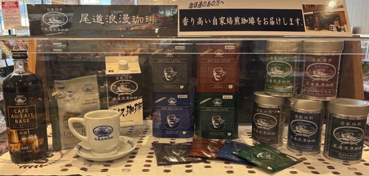 銘店コーナーに地元尾道「尾道浪漫珈琲」商品を新規で導入! 尾道浪漫珈琲は、1996年尾道本通り商店街で創業。「どこよりも おいしい珈琲を飲んでいただきたい。」という想いをもって、味を追求し、香り高い自家焙煎珈琲をお届けしています。