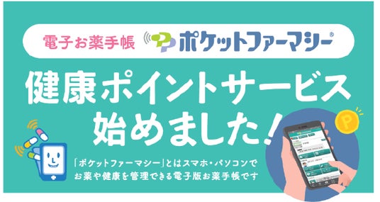電子版お薬手帳のアプリ「ポケットファーマシー」は、お薬が準備できたら、お客さまのスマホに連絡するサービスです。今回新たに「ポケットファーマシー」で、健康維持に必要な習慣や行動に“健康ポイント”を付与するサービスを行います。1日の歩数結果とサルーステーションでの血圧測定で健康ポイントを付与します。貯まった健康ポイントは100ポイントから値引きクーポンとして、健康食品や衛生用品などの購入時に利用できます。