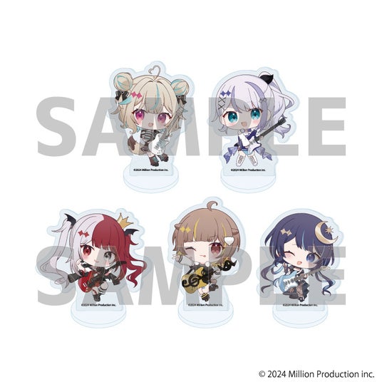 『ミリプロ』メンバーの全身を描いたアクリルスタンドは、縦横最大15cm。テンションが上がるロックな雰囲気をたっぷり味わうのはもちろん、個性あふれるエレキギターやファッションも必見です!