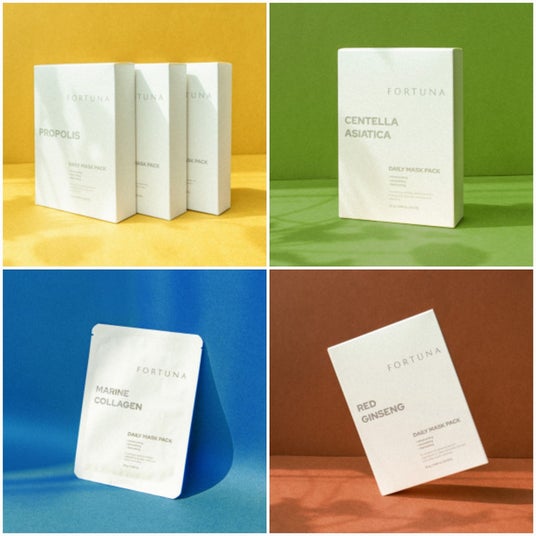 画像左上:FORTUNA デイリープロポリスマスクパック/左下:FORTUNA デイリーマリンコラーゲンマスクパック/右上:FORTUNA デイリービョンポマスクパック/右下:FORTUNA デイリーヘンソンマスクパック