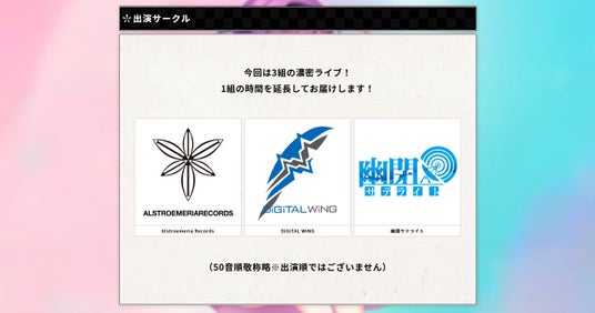 【出演】 Alstroemeria Records / DiGiTAL WiNG / 幽閉サテライト