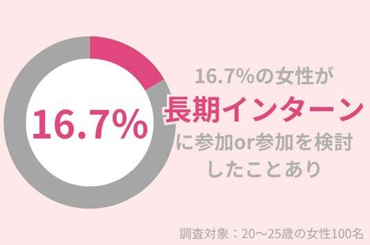 調査の結果、20~25歳女性のうち、16.7%の方が長期インターンを少なくとも検討したことがあるとわかりました。