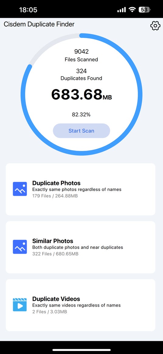 重複ファイルとは、ファイル名がどうであれ、2つまたは複数のファイルが全く同じファイルのことです。Cisdem Duplicate FinderはiPhone/iPadの写真アプリから重複した写真と動画を正確かつ素早く識別します。写真アプリがサポートしているJPEG、HEIC、PNG、GIF、MP4などの画像形式と動画形式にも対応します。
